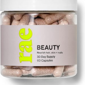 Rae Beauty Capsules – Women’s Vitamins for Healthy Hair, Skin and Nails – Vegan Biotin Supplement with Hyaluronic Acid and Vitamins C and E